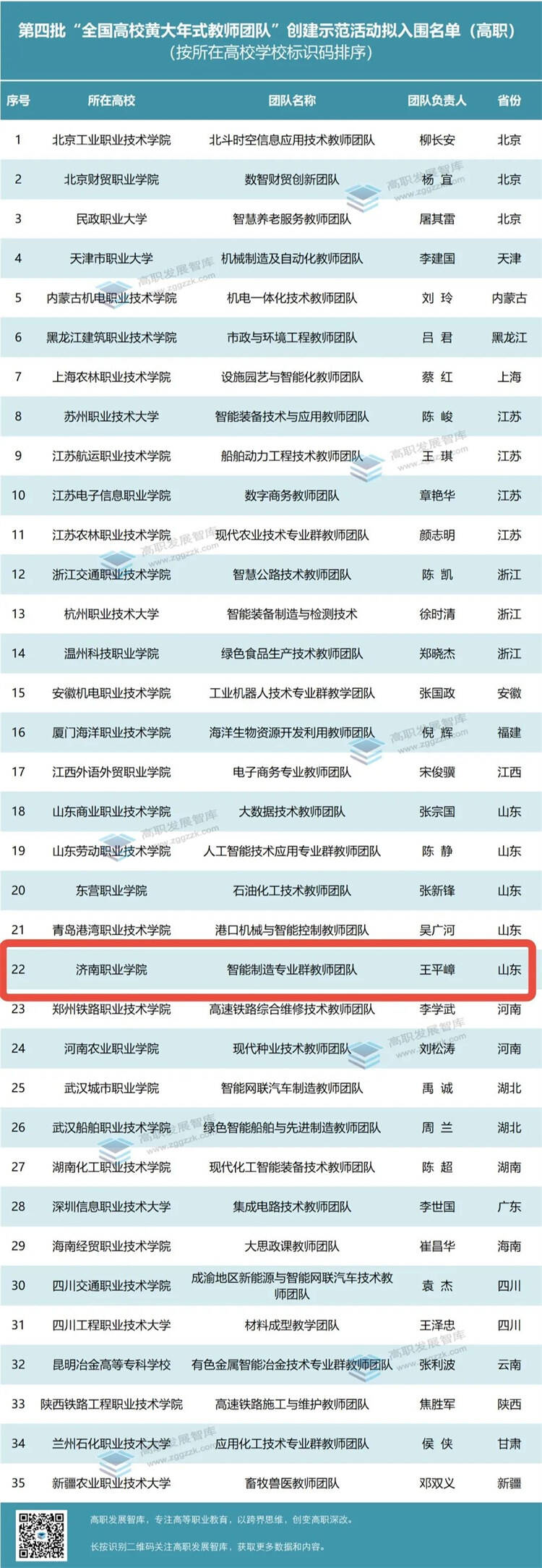 “全国高校黄大年式教师团队”创建活动由教育部组织开展,旨在表彰和激励在师德师风、教育教学、科研创新、社会服务等方面表现突出的高校教师团队。本批次评选经各高校自主申报、省级教育行政部门择优推荐、专家评审等多轮严格遴选,最终全国仅有200所高校的教师团队入选,其中高职院校团队35支。济南职业学院的入围,标志着其教师团队建设已跻身全国先进行列,获得了国家级的高度认可。