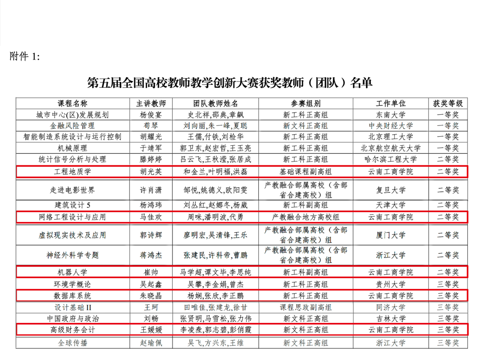 云南工商学院教师获第四届全国高校教师教学创新大赛一、二、三等奖,拍摄日期:2024年7月31日