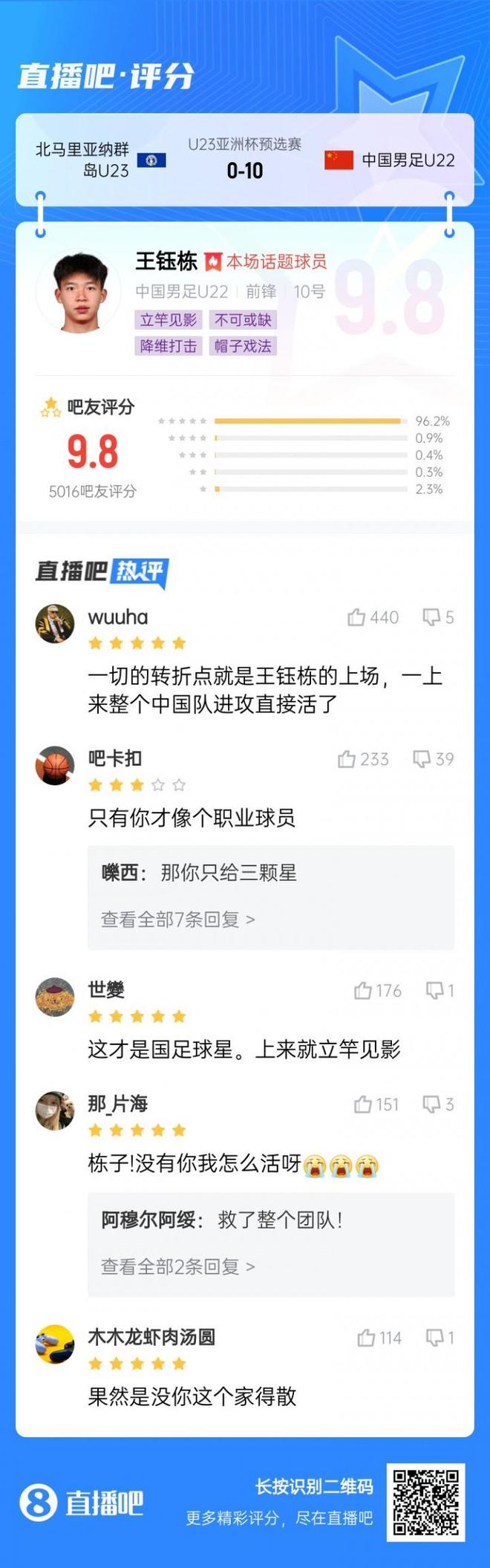 赛后,德转中国区管理员朱艺在微博上称赞了这位新星:“有他中超级,没他业余级。你就说值不值150(万欧元,为王钰栋德转身价)吧。”